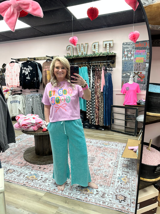 Sold outAcid Wash Boyfriend Tee - Turquoise
