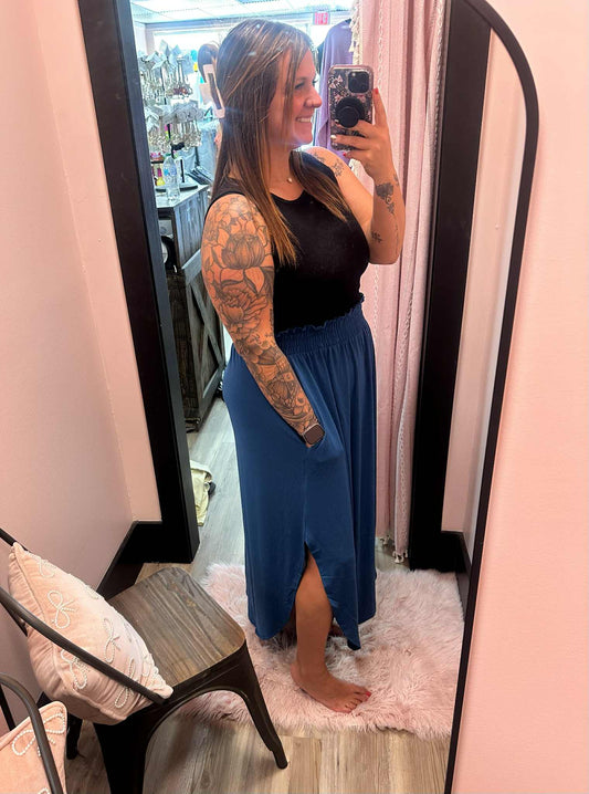Smocked Waist Side Slit Maxi Skirt - Asst