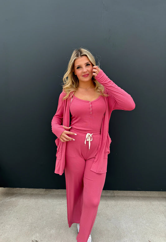 Self Tie Shoulder Straps Jumpsuit - Pink