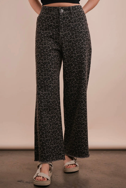 Leopard Printed Marine Straight Jeans