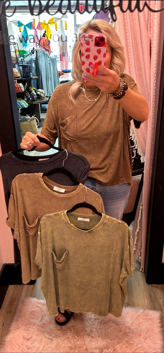 Washed Ribbed Short Sleeve Top - Asst Colors