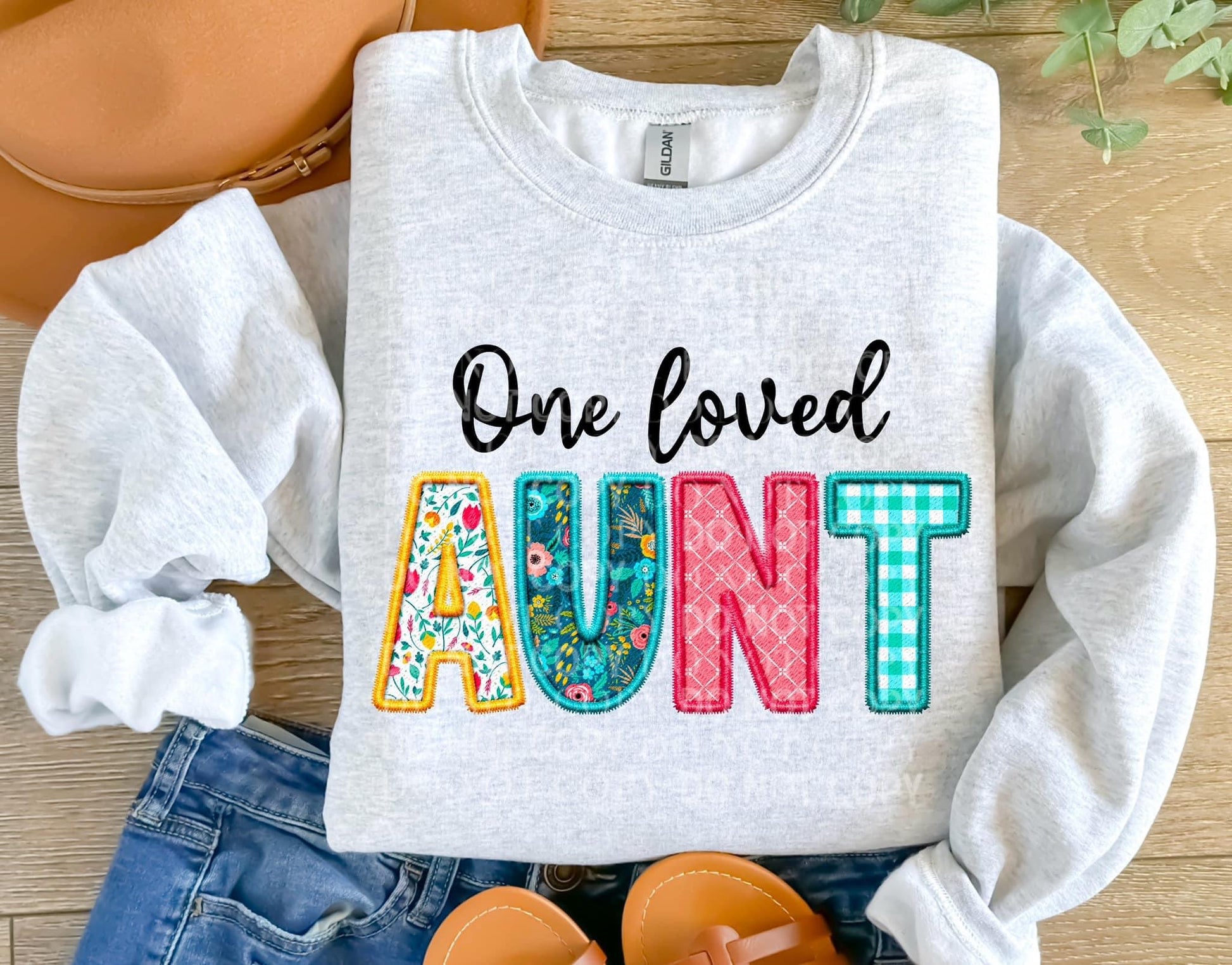 One Loved Aunt Spring Faux Embroidery Graphic Tee/Sweatshirt