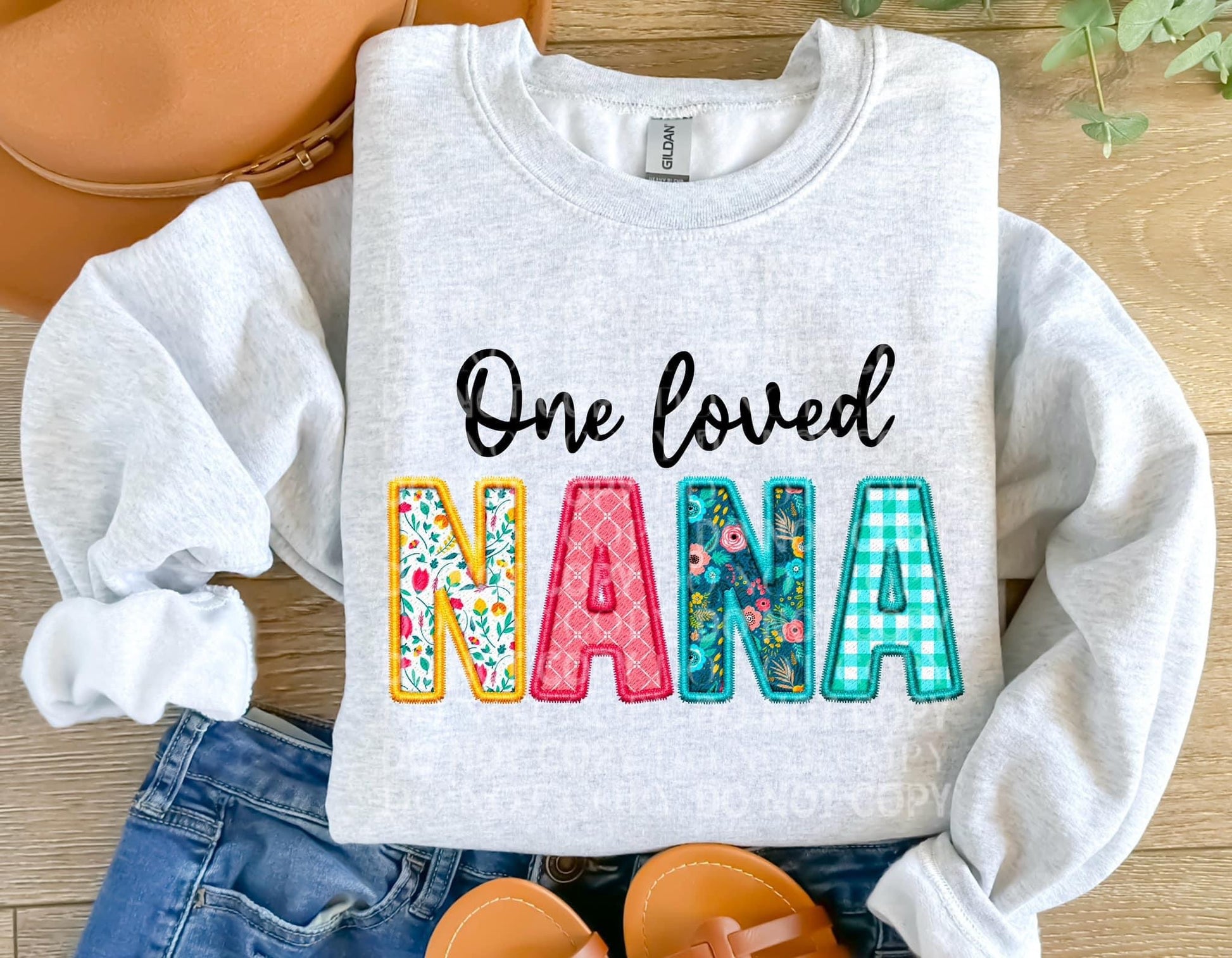 One Loved Nana Spring Faux Embroidery Graphic Tee/Sweatshirt