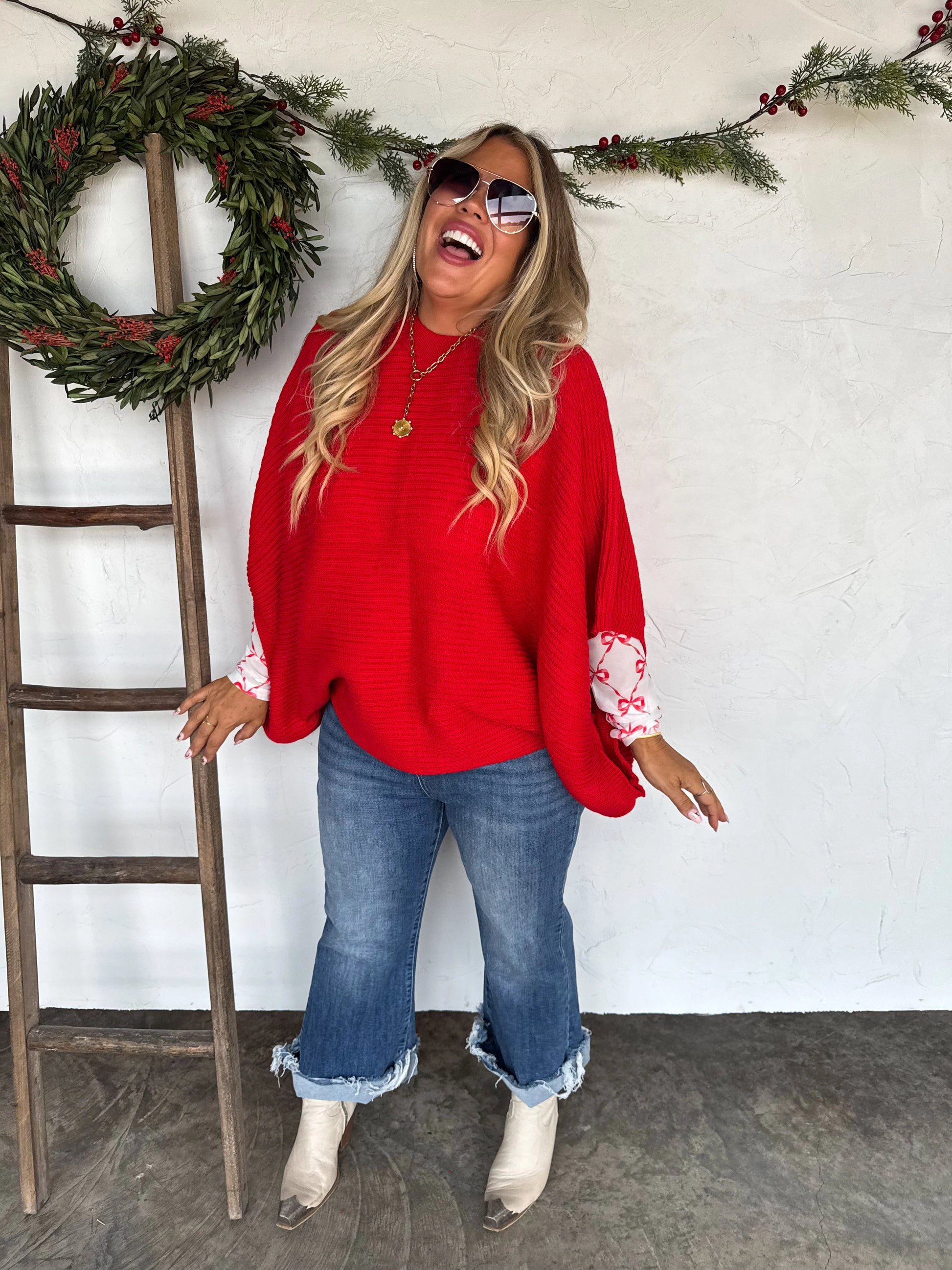 Stay warm and fashionable in this MEG Pullover Poncho. Features long arm holes for a flowy poncho feel, yet in a cute knit sweater. This stylish poncho sweater is designed to keep even the chilliest weather at bay. Perfect for a chic, cozy look.